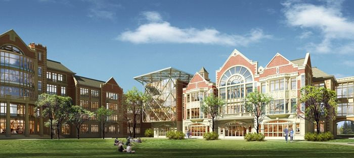 在體育方面,規劃了400米標準操場、250米運動訓練場、50米8道標準游泳池、室內籃球館、羽毛球館、排球館、賽艇槳池、高爾夫練習場、擊劍館、壁球館、攀巖館、形體教室、健身房、多功能活動室等豐富多樣的運動空間。
