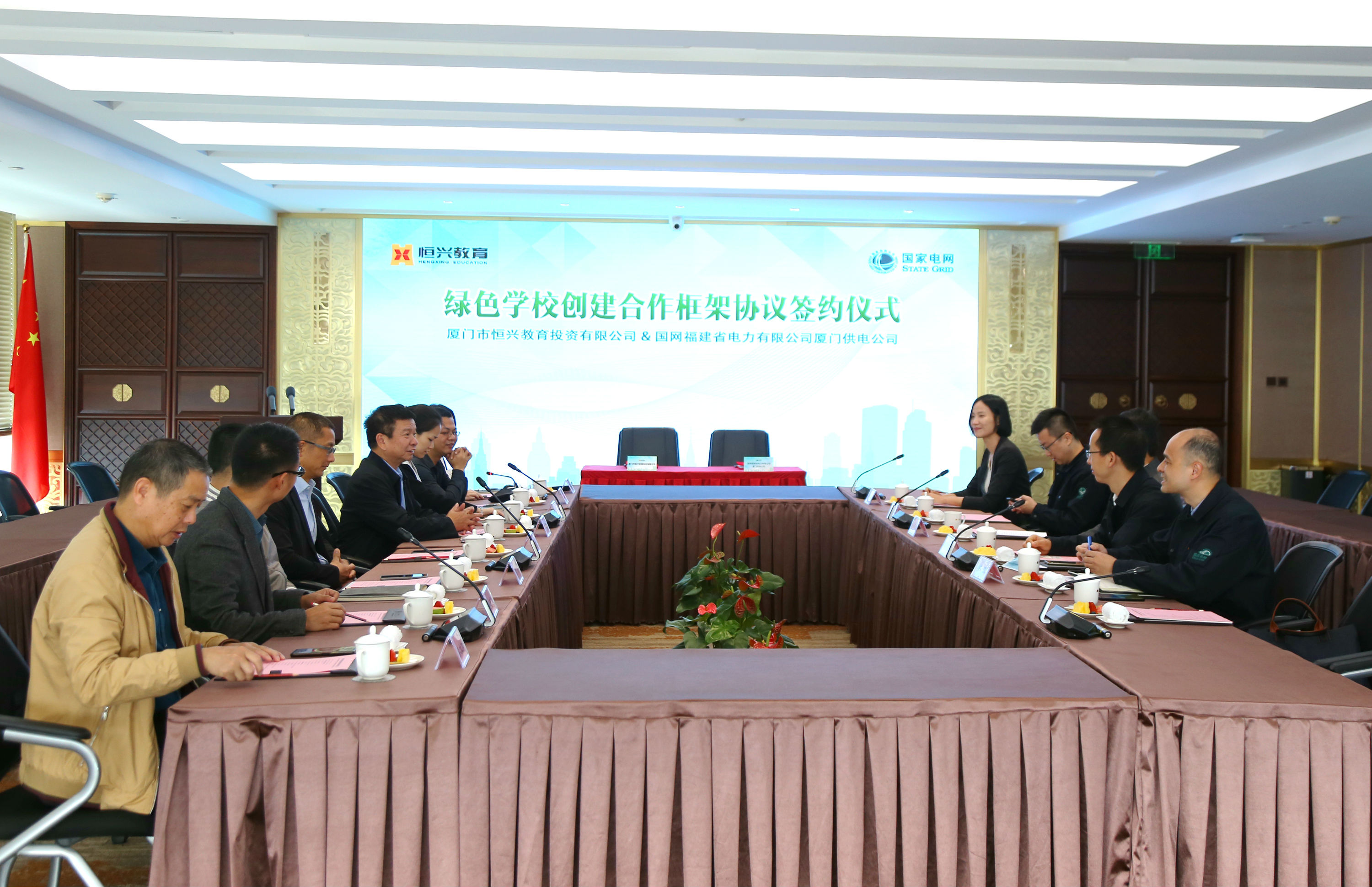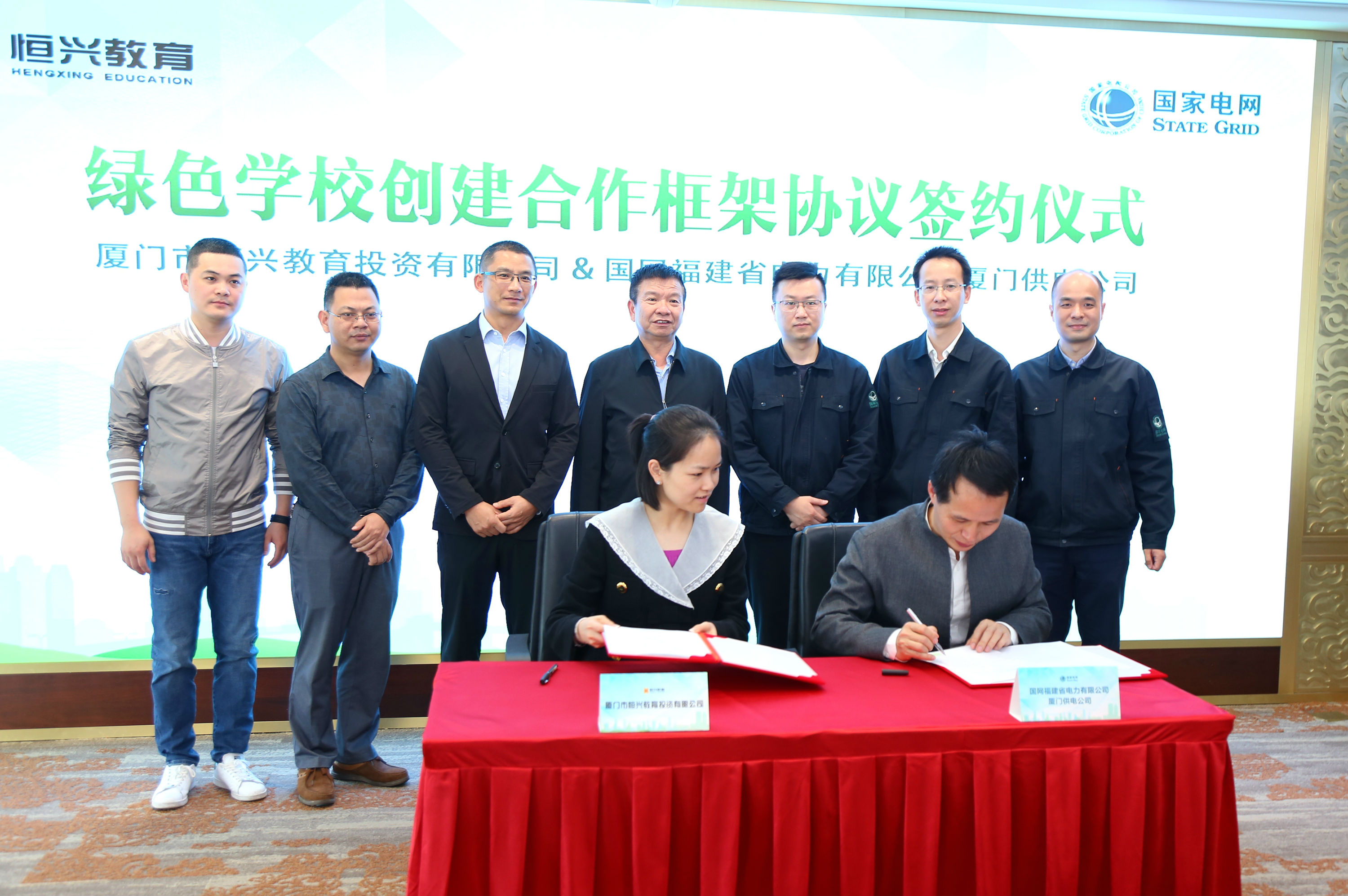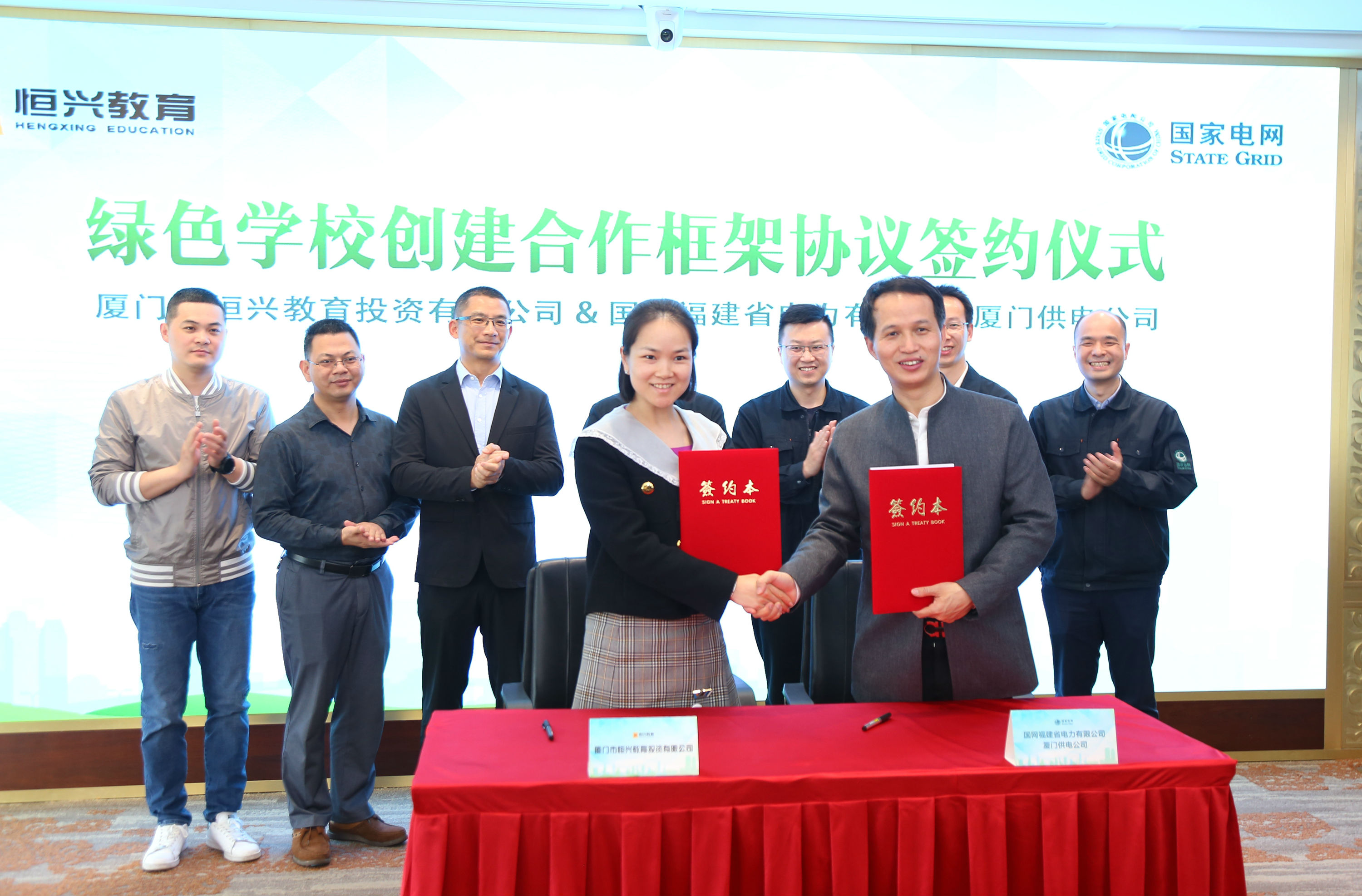 4月9日上午,恒興集團旗下廈門市恒興教育投資有限公司與國網福建省電力有限公司廈門供電公司在財富中心43樓多功能廳舉行簽約儀式,合作創建綠色學校。