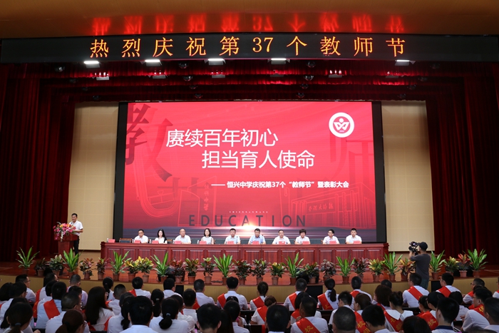 當(dāng)天下午3點,恒興中學(xué)鐵錚大禮堂座無虛席,伴隨著莊嚴的國歌聲,慶祝教師節(jié)暨表彰大會拉開序幕。大會表彰了2020-2021學(xué)年度“三十佳教師”、“優(yōu)秀教師”、“優(yōu)秀班主任”、“優(yōu)秀員工”、“優(yōu)秀共產(chǎn)黨員”,校董會頒發(fā)了中高考獎教金。