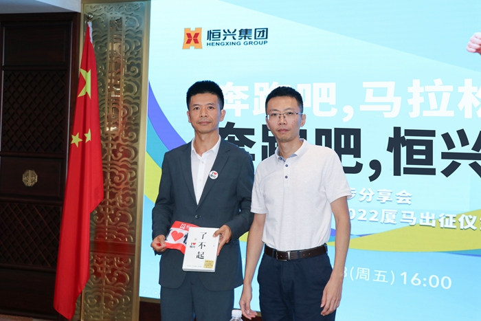 當天,集團公司總裁辦主任吳勇慧在發言中祝賀葉仁平再次中簽,期待他將恒興人追逐不凡的身姿,再次帶進廈馬賽場,并預祝他突破個人歷史成績記錄?,F場,吳主任為參賽職工發放了賽事報名費補貼,并贈送勵志書籍、馮唐的新書《了不起》。?