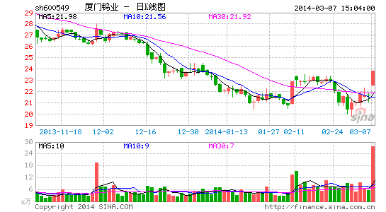 廈門鎢業(yè)(26.04,?-0.52,?-1.96%)(600549)20日晚公布非公開發(fā)行股票預(yù)案,擬募資30億元補充流動資金,除公司控股股東、上市公司南京高科(10.70,?0.17,?1.61%)、投資機構(gòu)認(rèn)購?fù)猓瑥B門鎢業(yè)增發(fā)獲得廈門兩大富豪捧場,其中包括資本市場的“強大散戶”柯希平。公司股票于2014年3月21日復(fù)牌。